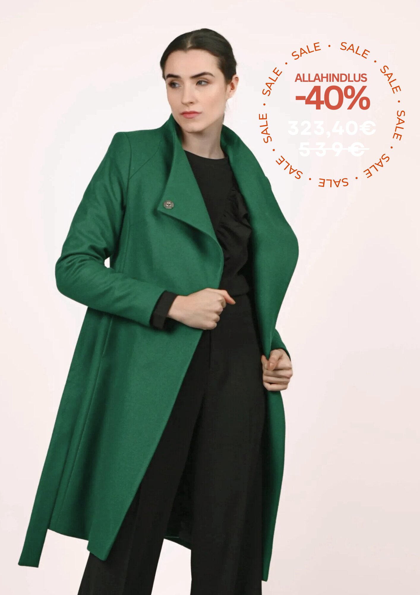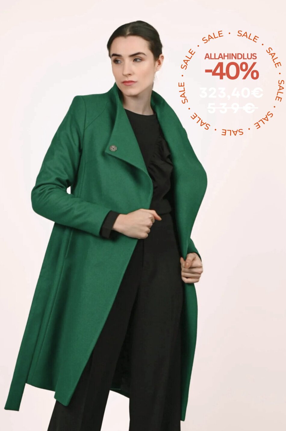 Meie kvaliteetsed naiste mantlid on 100% villasest kangast, mis hoiab Sind alati soojas. Kaisutaja mantli teeb eriliseks trukkidega kinnitus, püstkrae ja põnevad läbilõiked. Soojust lisab ka voodri all peidus olev vatiinikiht.