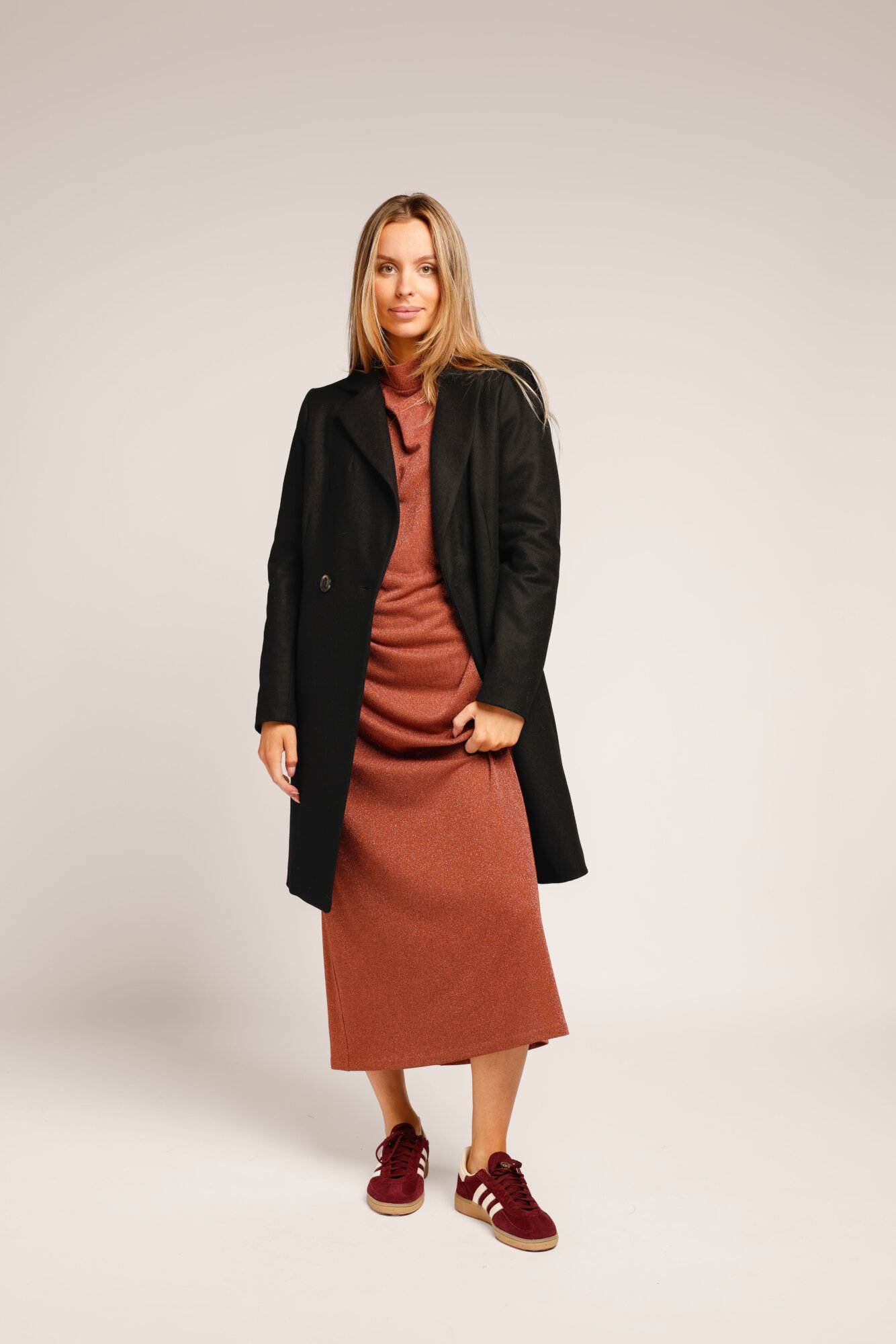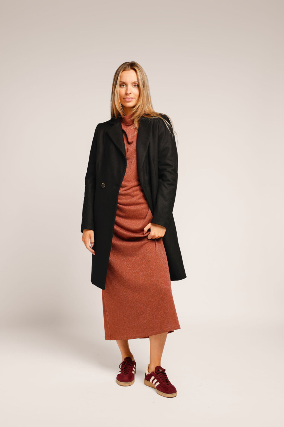 Kui pooldad minimalistlikku stiili, siis see 100% villane must Klassik talvemantel on just Sulle mõeldud. Pintsakkraega, ilma vööta ning klapptaskutega vormihoidevale mudelile lisab soojust voodri all peidus olev vatiinikiht.