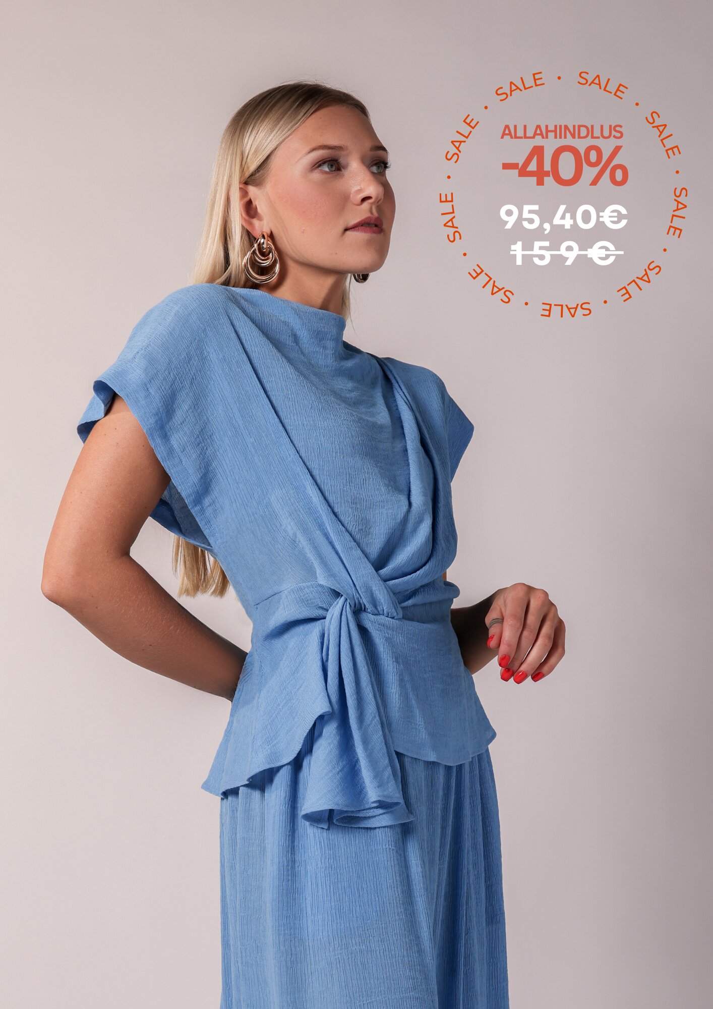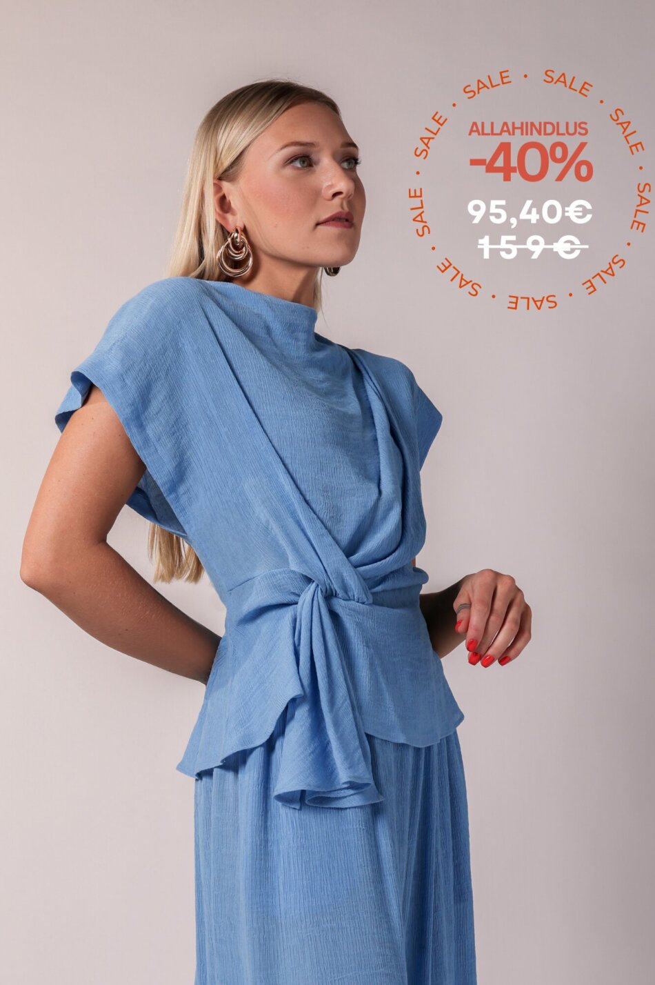 Sinine Tekstuurne SõlmePluus