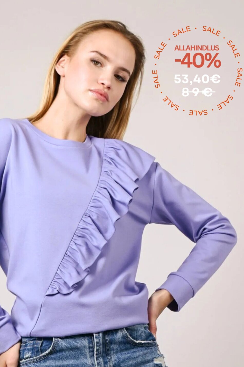 Meie pusa on mugav ja lihtsa disainiga, naiselik ja aitab Sind välja kõikidest kostüümidraamadest! Satsipusa esiosa kaunistab vallatu volang, kuid seljaosa on minimalistlikult satsitu, mis tagab pusa mugavama kandmise üleriiete all.